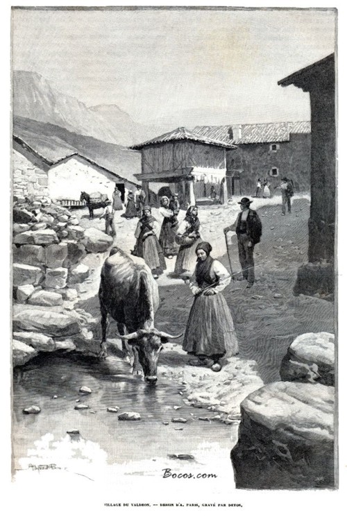 La meseta de Valdeón tiene casi la misma frescura que la Liébana aunque más altura. Anchos caminos la atraviesan en todos los sentidos, bonitos carros tallados la recorren, la población es alegre, parece contenta y vive bien, a pesar de la ausencia de cualquier médico en un número indeterminado de leguas a la redonda, y la ronda se hace entre montañas elevadas.