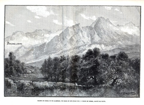 ¡Que maravilloso cambio de decoración! Nuestro cura, que nos ha hecho servir al levantarse un excelente chocolate, nos ha preparado un buen desayuno, está de un humor encantador. Incluso nos presta su caballo para subir a Valdeón. No quiere recibir nada a cambio de esta “pobre” hospitalidad. Hacemos lo que se hace en casos parecidos en España y le pedimos una serie de misas por el alma de todos nosotros. El buen hombre, que al parecer raramente dice misa entre semana, nos mira malignamente, calcula el precio de nuestras misas, se aguanta, cuenta con sus dedos y nos pide 7,5 francos por nuestros gastos. ¡Y que esfuerzo para hacerle devolver diez céntimos de las ocho “pesetas” que van a parar a una bolsa enorme, un verdadero tesoro de doblones fruto de sesenta años de economía! El hecho es raro en España donde el cura, generalmente pobre, recibe de buena gana al viajero sin abrigo, y hay que ir a la tierra maldita para encontrar el ejemplo de lo contrario. Tendremos una nueva prueba tres horas más tarde.Estas tres horas nos van a conducir muy lejos de Caín, del que huimos con la prisa del hermano de Abel expulsado por su padre. El mismo camino que la víspera hasta el pié del Asotín, después mamelones ondulados que se ensanchan hasta el límite extremo de la cadena.(1).
