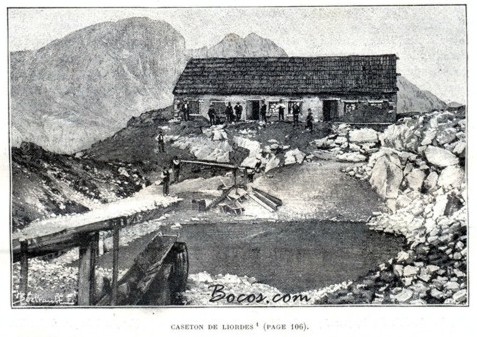 Pero por inhóspita que sea una morada hay una razón para elogiarla, allí la hospitalidad se ejerce ampliamente y el SR. de Olavarría encontró el medio de hacer de este pobre “casetón” de Liordes uno de los mejores campamentos de la “mala tierra”. Por otra parte Liordes es como un oasis perdido en el desierto. La planicie que domina la casa de la mina es lo que los castellanos llaman “vega”, es decir una llanura fértil poco extensa. La llanura de Liordes, como las raras “vegas” de los Picos es una cuenca que antiguamente fue un lago y cuyo humus ha tapizado la hondonada. Hay depositada una hierba espesa, donde pacen las yeguas, fluyen las aguas, se forman pequeños embalses, restos de lagunas desaparecidas por las fisuras que el agua ha hecho a través de la caliza y en las cuales se precipitan, sin remontar a los niveles de los tres collados deprimidos — Liordes, las Nieves y Remoña — que formarían los rebosaderos. Parece casi un milagro como esta naturaleza risueña contrasta con la rudeza de su entorno, cuando en la desembocadura de una de estas brechas y a la salida del pedregal, el sol verdea la fresca pradera bordeada de murallas y guardada por una caseta.