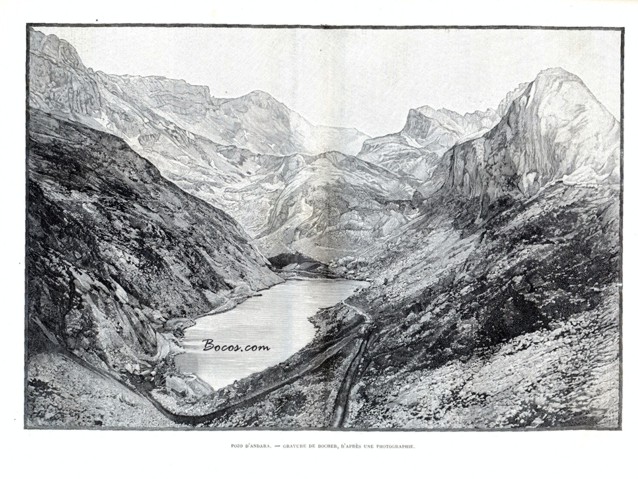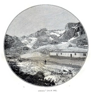 Gracias a Dios, en nuestros comienzos todo marchaba según nuestros deseos, excepto el tiempo. Mientras subimos las revueltas que nos conducían a las minas de Ándara, la lluvia amenaza, después cae, después se convirtió en nieve: y el camino es largo. Se cuentan cinco leguas lo que quiere decir en buen francés seis horas, nosotros lo aprenderemos a nuestra costa. Los carros cargados descienden pesadamente llevando el mineral al horno de Dobrillo, donde antes de ponerse en ruta por el puerto de Unquera, se le somete a cielo abierto a una primera cremación. Llegamos a Ándara ateridos y mojados hasta los huesos. El Sr. de Arce estaba ausente, pero el subdirector, el Sr. Alfonso Martínez Infante, nos dio la más encantadora acogida gracias a las recomendaciones que llevábamos. Este excelente hombre nos prestó ropa. Todo el personal doméstico se puso a nuestras órdenes; Emilia pone a secar nuestros vestidos, Jesusa atiza el fuego para la comida, Angélica, su risueña sobrina, prepara la cama, el mejor lecho de la casa, el lecho de la Infanta Isabel. Es allá donde Alfonso XII y su hermana inauguraron las famosas cacerías que han dado origen a las crónicas y sobre todo a la imaginación de los periodistas madrileños. Pero el Rey tuvo buen tiempo y nosotros lo tenemos malo: nevará toda la noche, mañana nevará todo el día. El tiempo pasa, resguardados de la intemperie y con la esperanza de que el sol salga mañana y que permitirá la feliz ascensión de la “Tabla de Lechugales” (2.445 m), el punto culminante del macizo oriental.